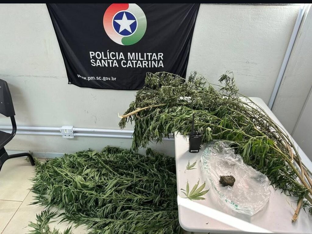 Durante patrulhamento, os agentes avistaram um homem pulando o muro de uma casa. Apesar das tentativas de abordagem, ele conseguiu efetuar fuga. Durante as buscas pela região, a guarnição identificou indícios de tráfico em uma residência próxima. No local, foram encontrados vários pés de maconha, porções da droga já prensadas, além de equipamentos comumente usados para o preparo e embalagem da mesma.