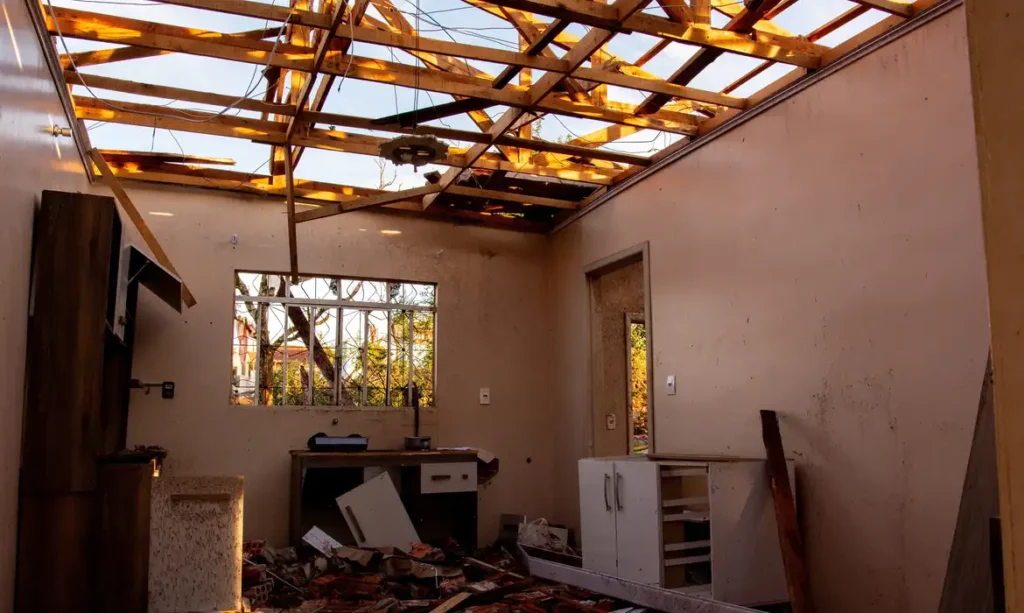 Em cada canto da cidade, o que mais se percebe é que os ventos que ultrapassaram 330 quilômetros por hora (km/h) levaram mais do que concreto. Cleiton Wieczorkovski estava fora da cidade e quando chegou em casa viu o que tinha acontecido.