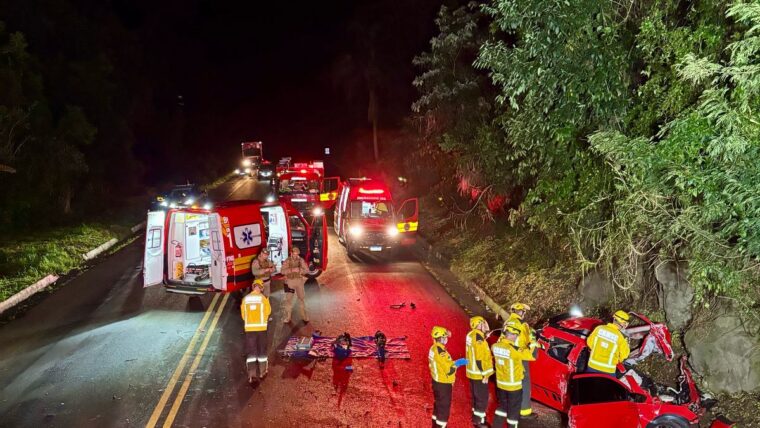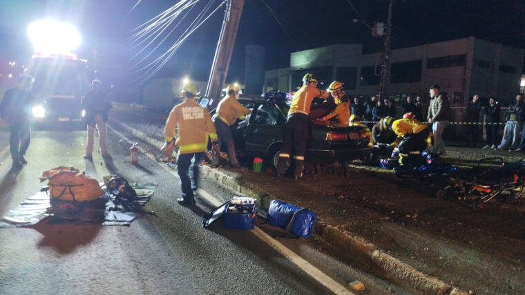Um acidente de trânsito registrado na noite de quarta-feira (24) mobilizou equipes do Corpo de Bombeiros Militar de Chapecó. Por volta das 22h49min, um veículo de passeio saiu da pista e colidiu violentamente contra um poste de energia elétrica na marginal da BR-480, sentido Trevo–Centro, no município de Chapecó. O…