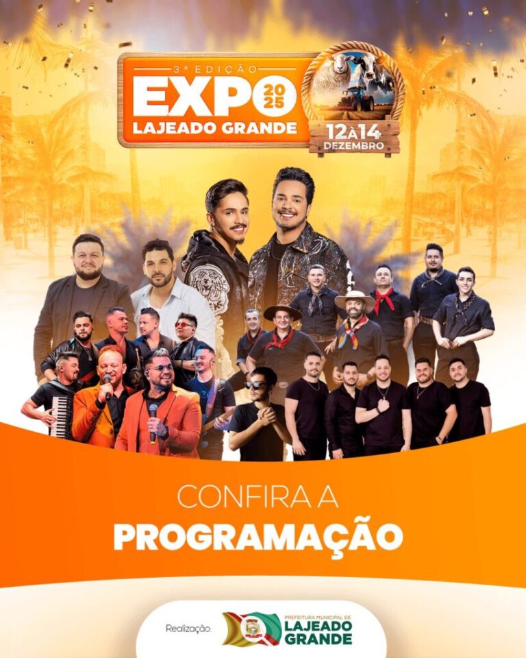 Vai iniciar na sexta-feira (12) e seguinte até o domingo (14) a 3ª Edição da Expo Lajeado Grande 2025, grandes atrações regionais e nacionais e