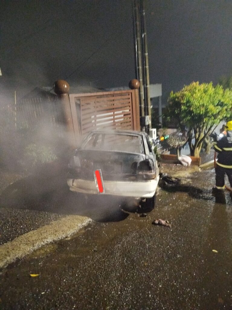 O Corpo de Bombeiros de Xaxim atendeu ocorrência de incêndio em um veículo na Rua Firmino Tozzo no Bairro Santa Terezinha, ocorrência registrada por