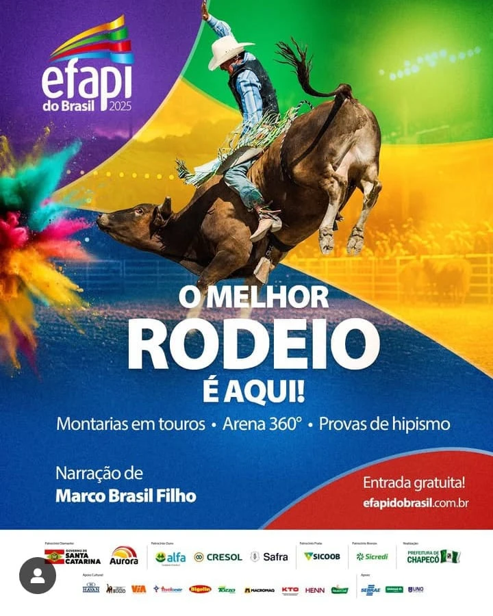 Simbologia da força do campo e da cultura, o Rodeio da Efapi promete ser um dos pontos altos da programação, reunindo competidores renomados e atrações que unem adrenalina, tradição e espetáculo.