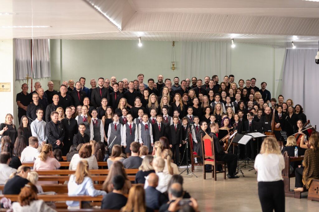 Coralistas e ex-coralistas se reuniram num grande evento realizado no domingo, 9, no Salão Paroquial da Igreja Matriz. O concerto “Vozes que Ecoam”, marcou o encerramento do projeto “O Canto Coral Vivo na Cidade de Xaxim: Vivências e Vozes que Permanecem”, desenvolvido pela Associação Coral Arautos do Grande Rei.