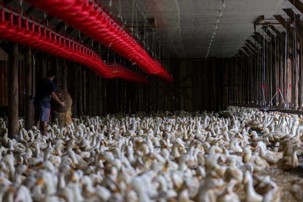 - Patos e marrecos: abate de 2,8 milhões de aves, com um VPA de R$ 45 milhões. Em 2024, foram exportadas 3,4 mil toneladas, com receita de US$ 11,5 milhões, fazendo com que Santa Catarina respondesse por mais de 99% das exportações brasileiras deste segmento.