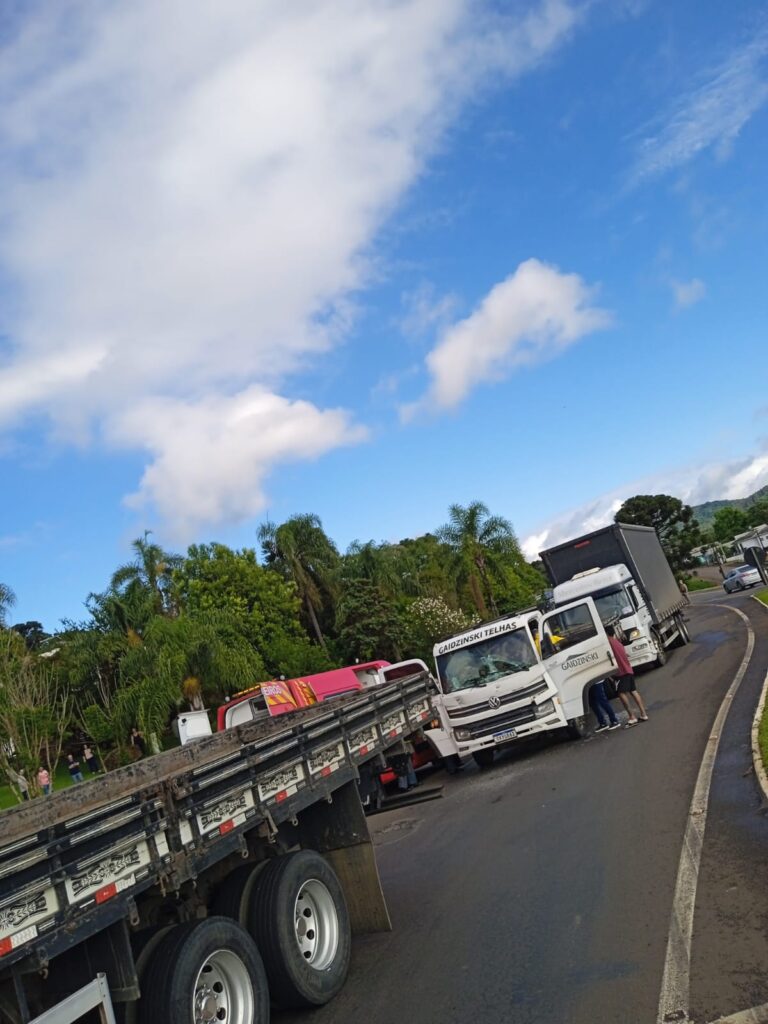 Um engavetamento envolvendo três caminhões deixou um motorista ferido na manhã desta terça-feira (2), no km 423 da BR-282, em Vargem Bonita. O acidente ocorreu por volta das 8h06 e mobilizou equipes do Corpo de Bombeiros Militar de Catanduvas.