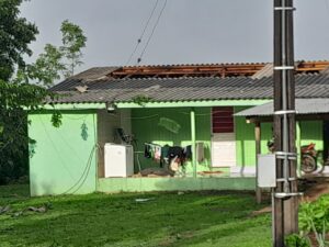 Em Xaxim fortes ventos derrubaram arvores na Linha Cachoerinha no interior, casas e um paio também foram destelhadas e a comunidade estava sem energia elétrica na manhã desta segunda-feira (17). Com o destelhamento e chuva, muita água acabou causando problemas no interior dos imóveis.