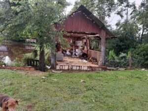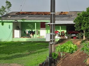 Em Xaxim fortes ventos derrubaram arvores na Linha Cachoerinha no interior, casas e um paio também foram destelhadas e a comunidade estava sem energia elétrica na manhã desta segunda-feira (17). Com o destelhamento e chuva, muita água acabou causando problemas no interior dos imóveis.