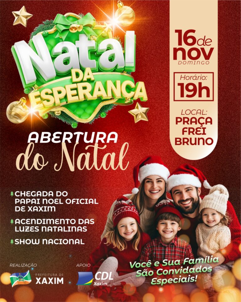 A abertura oficial acontece neste domingo, 16 de novembro, a partir das 19h, na Praça Frei Bruno. Vai ter chegada do Papai Noel, acendimento das