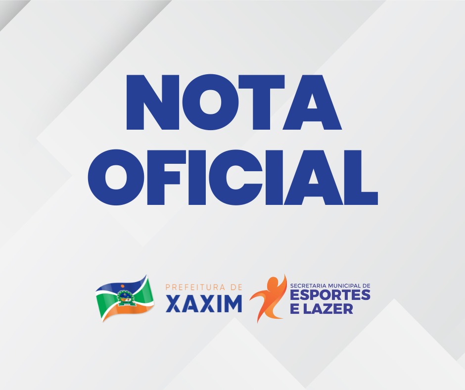A Prefeitura de Xaxim, por meio da Secretaria de Esportes e Lazer, emitiu uma nota oficial informando que o Campeonato Municipal de Futebol Sete, nas categorias masculina e feminina, está temporariamente suspenso.