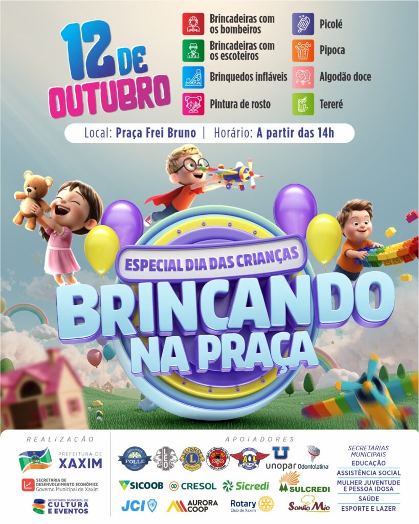 No Dia das Crianças, a diversão está garantida no Brincando na Praça, especial Dia das Crianças!